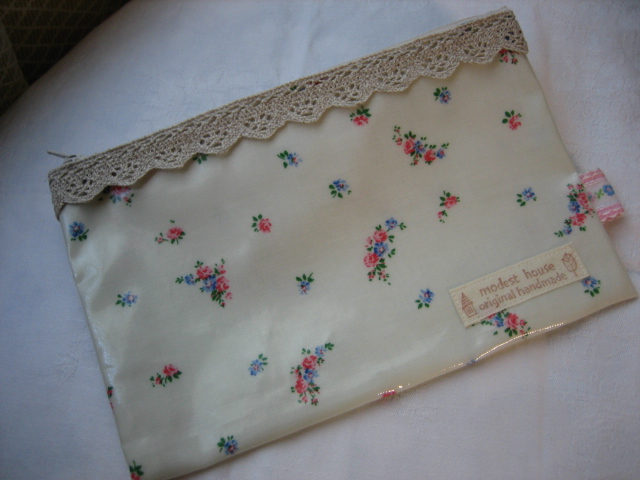 オイルクロスの生地を使ったぺたんこポーチです